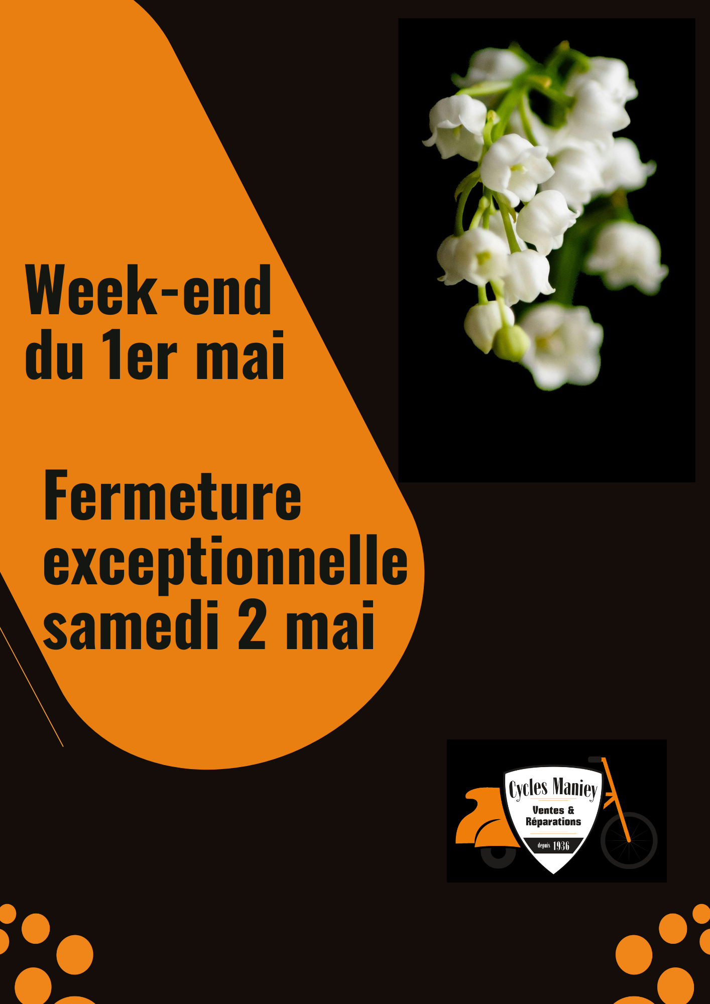 Pour le week-end du 1er mai, nous sommes fermés également samedi 02 mai.